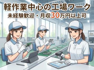 軽作業中心の工場ワーク|未経験歓迎・月収30万円以上可【正社員】