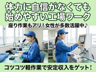 ◆体への負担を抑えながら働ける、工場内での軽作業を中心としたお仕事です。